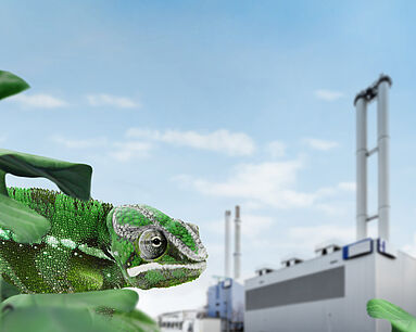 Fortan wandelte das Chamäleon mit hohem Wiedererkennungswert über sämtliche Visuals der Kampagne. Vor der Kulisse eines grünen Kraftwerks verbindet es Technik und Natur, Anpassungsfähigkeit und Kontinuität. Das markante Energy Red setzt dabei einen starken Kontrast. Im Kampagnen-Trailer bewegt sich das Chamäleon durch verschiedene Umgebungen, ein Sinnbild für die Dynamik des Energiemarkts. Und in den technischen Visuals taucht es subtil als cleveres Markensymbol in einer Welt aus Kompressoren, Motoren und Kraftwerken wieder auf.